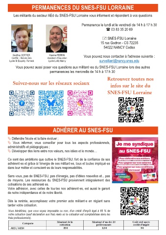 Les militants du secteur AEd du SNESFSU Lorraine vous informent et répondent à vos questions