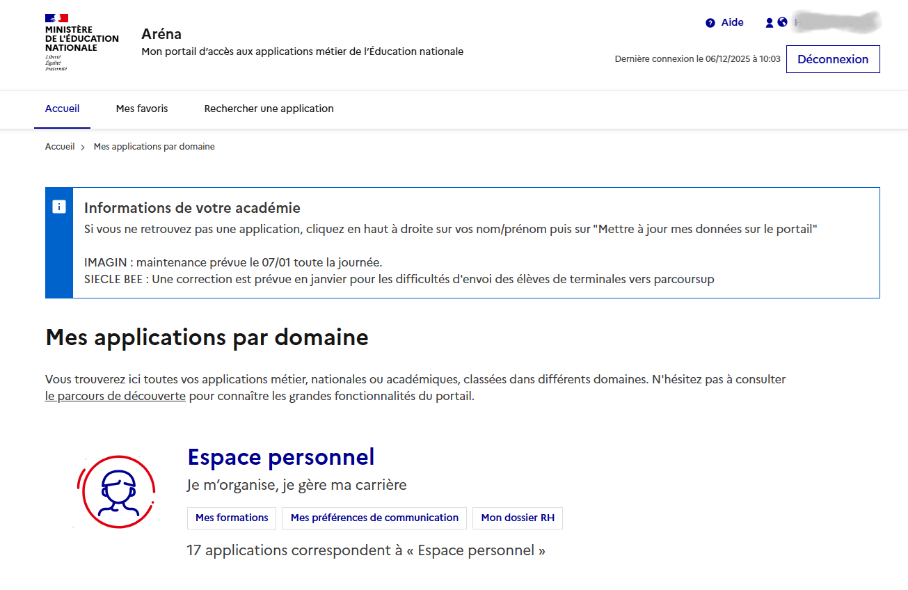Rubrique "Votre Dossier", onglet "Situation de carrière"