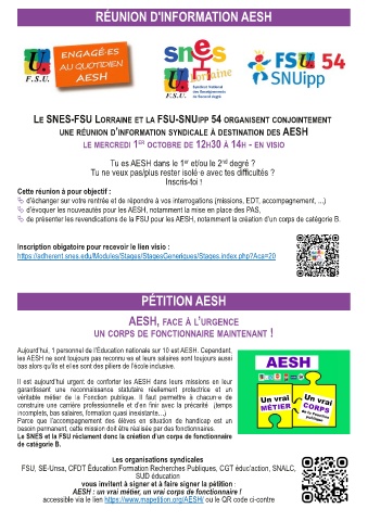 UNE RÉUNION D’INFORMATION SYNDICALE À DESTINATION DES AESH