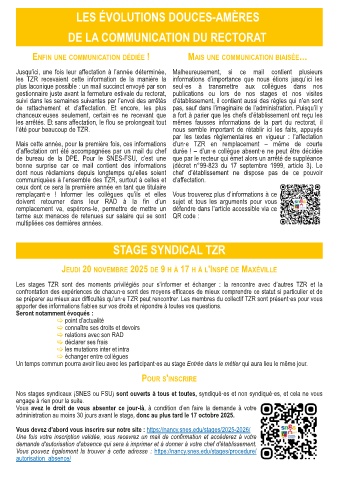 communiquées à l’ensemble des TZR, surtout à celles et d’affectation.
