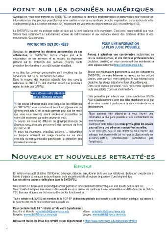 adhérent·es, le SNESFSU œuvre chaque jour à la Pensez à actualiser vos coordonnées (notamment en